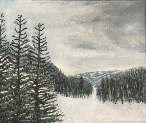 Recently I was asked to take part in a collaborative exhibition at the Gallery Weston. I was inspired by landscapes in Canada and created a small collection of winter acrylic landscapes which explores the subtle effects of climate change.